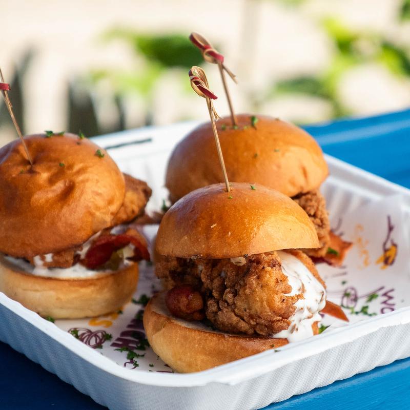 Crispy fried chicken breast, grilled pineapples, lettuce, tomato, jerk sauce, jerk aioli, brioche bun.