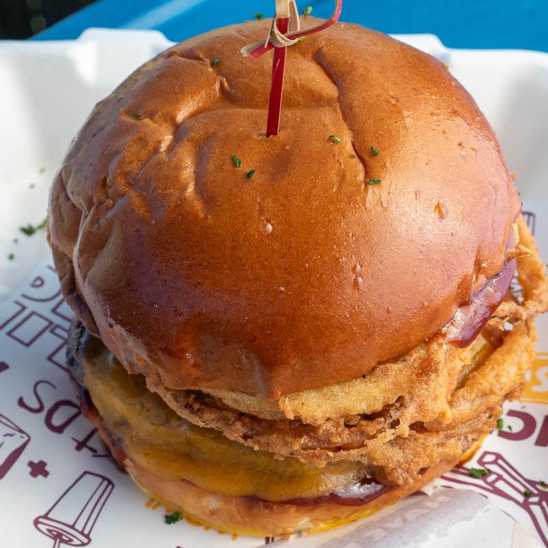 100% Angus beef, double cheddar, crispy onions, BBQ sauce, brioche roll.